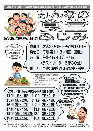 「みんなの食堂ふじみ」令和3年10月の開催についてのご案内です。