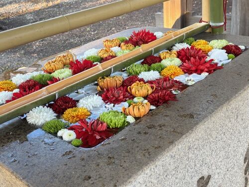 華やかにお出迎え 村富神社 『花手水』(2026/1/2)