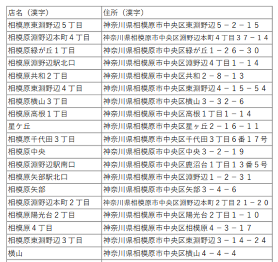 相模原市内のペットボトル回収機設置店舗(予定含む)