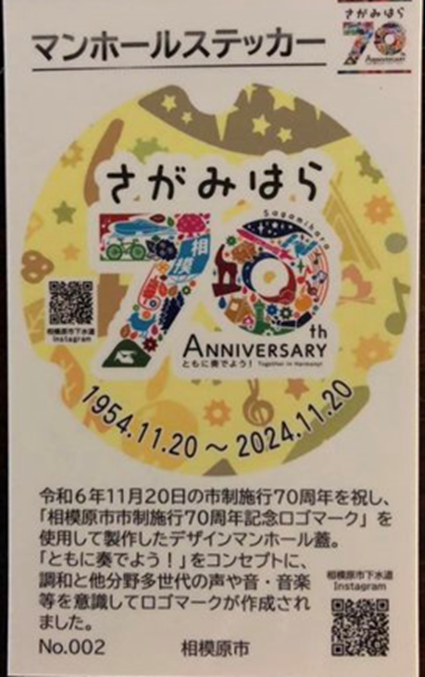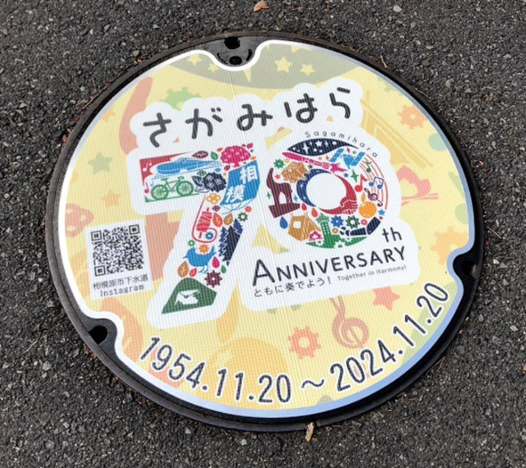 市制施行70周年を祝した記念ロゴをデザインしたマンホールを設置されました。