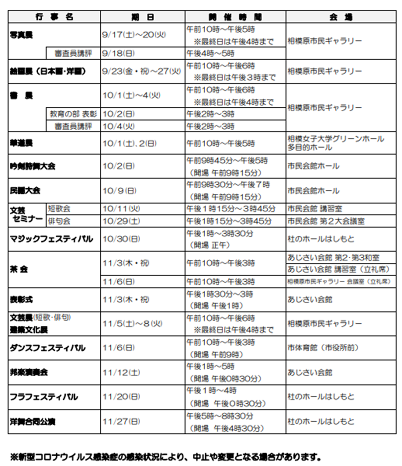 ※新型コロナウイルス感染症の感染状況により、変更や中止となる場合があります。