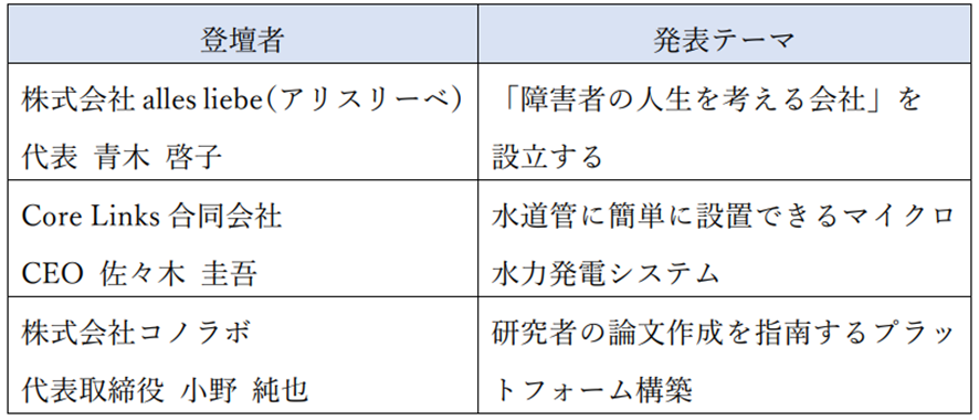 登壇者及び発表テーマ