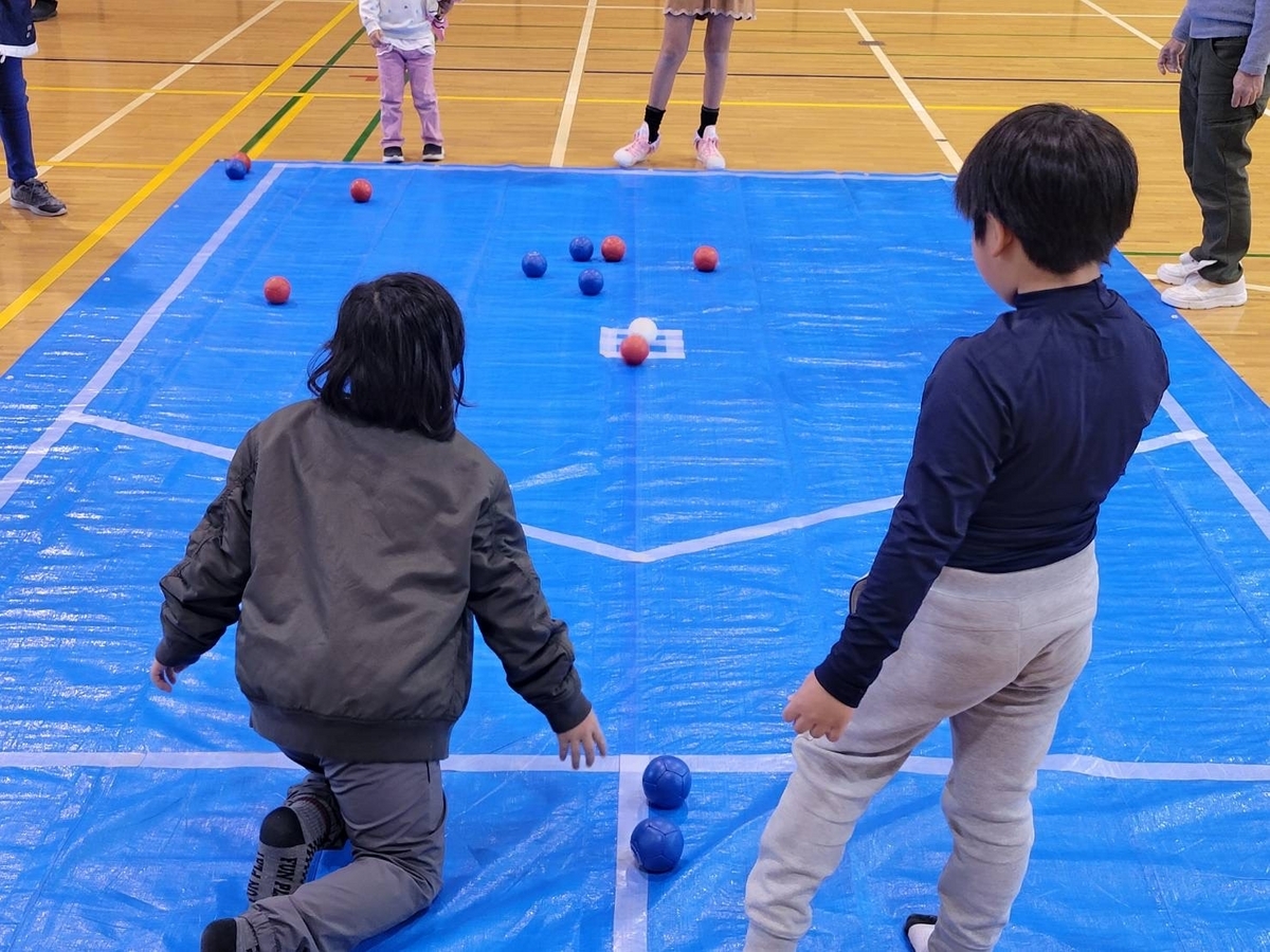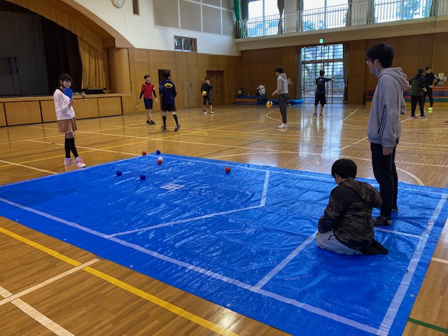 あいにくの天気となってしまったため、サッカーとドッジボールは中止して、ボッチャ