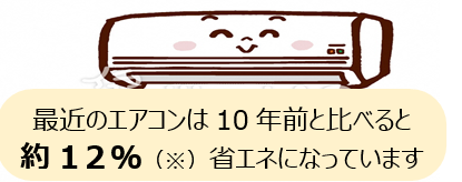 最新型のエアコンに買い替えると、電気代の節約にプラスして快適性もアップします♪