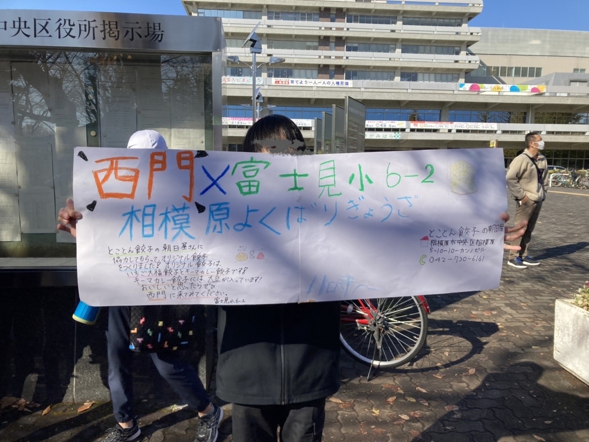 富士見小学校の児童が、コロナ下で苦境が続く地元飲食店を盛り上げようと、飲食店と協力し、オリジナルの弁当を開発、12月9日(木)に、相模原市役所 本庁舎前の側道で販売しました。