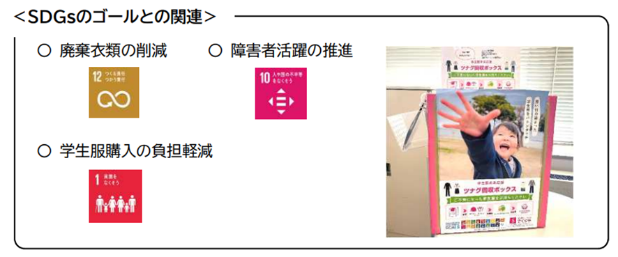 寄附された学生服は、株式会社アンスタイルが運営する福祉事業所「あん’s work」がリフォームし、同社が運営する「学生服リユースショップさくらや相模原店」において、経済的困難を抱える家庭における学生服購入の負担軽減を目的に、手頃な価格で販売されます。