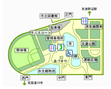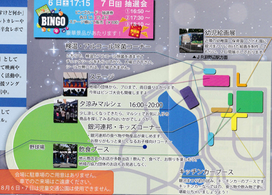 2022年の大野北銀河まつりの会場は、いつもは子供たちが、自転車やゴーカートを楽しむ『児童交通公園』です。下の図の交通公園の場所です。