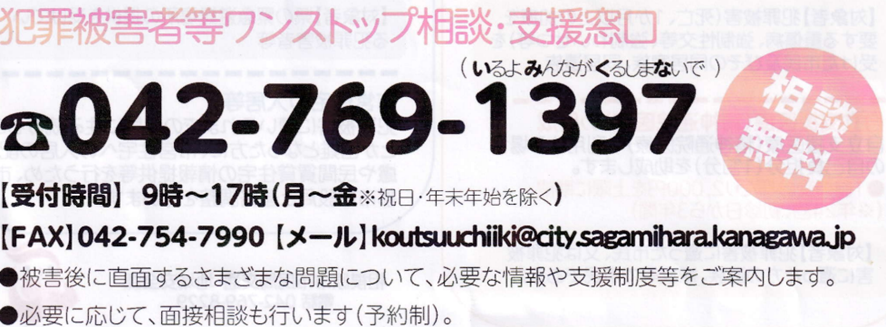 相模原市犯罪被害者等支援条例の詳細な内容はこちら☟