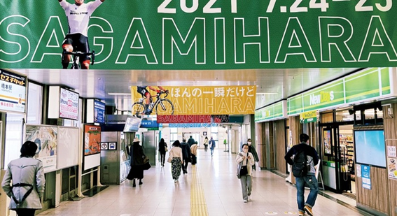 自転車競技への機運醸成を図るため相模原市は、橋本駅・相模原駅・相模大野駅周辺にオリンピックをPRする装飾物を掲出しました。