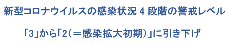警戒レベル 2(=感染拡大初期)に引き下げ