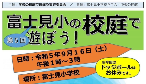 富士見小学校の校庭を活用して、子ども達が思い切り遊べる場を創出する取り組み、「富士見小の校庭で遊ぼう!」が、2023年9月16日(土)、午後1時から開催されました。
