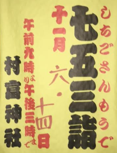 11月6日(土)、14日(日)に村富神社で、七五三のご祈祷が受けられます。