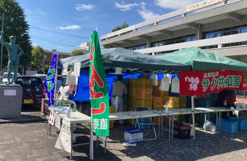 10月4日(火)市役所本館正面玄関前広場で、長野県佐久市の農家によるリンゴやプルーンの即売会が行われました。