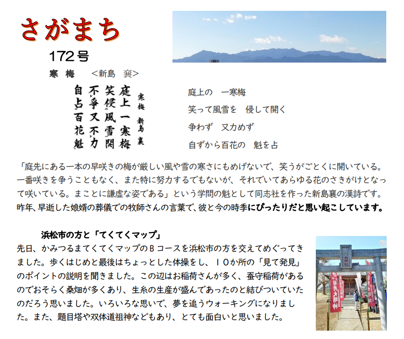 さがみはら地域づくり大学の同級生、南区の数野さんが編集している情報誌『さがまち』172 号が届きました。