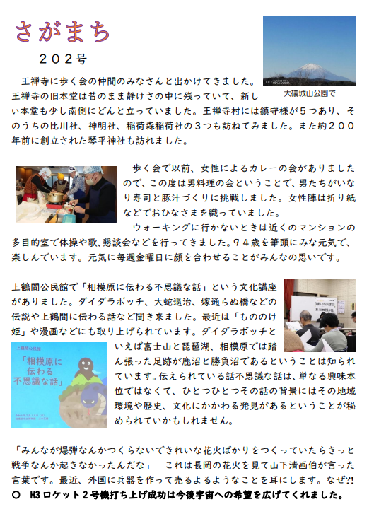 さがみはら地域づくり大学の同級生、南区の数野さんが編集している情報誌『さがまち』202号が届きました。