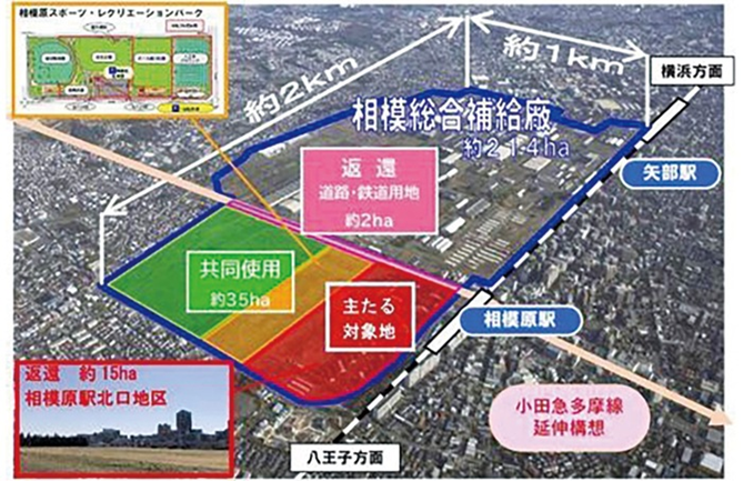 相模原駅北側に広がる米軍相模総合補給廠約214haの一部で、14年に国に返還された約17haのうち、道路・鉄道用地を除いた約15haで、用地は国の所有となります。