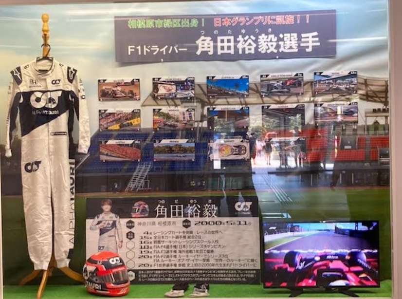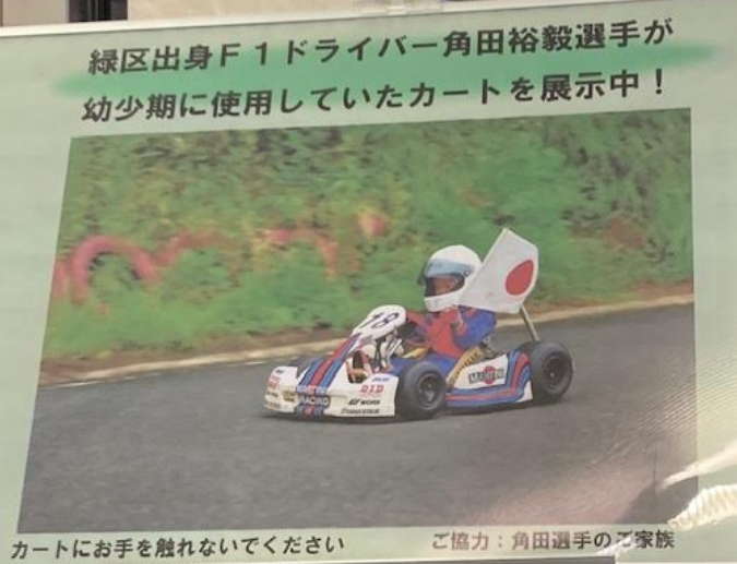 相模原市出身のF1ドライバー角田裕毅選手が幼少期に使用していたカートが相模原市役所本館1階ロビーに展示されています。